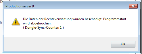 Noch ein Hinweis zur Sicherheit dieser Funktion: Die Benutzerdatenbank ist verschlüsselt und direkt mit dem jeweiligen Programm-Dongle verbunden. Sollten Sie einmal folgende Fehlermeldung erhalten: