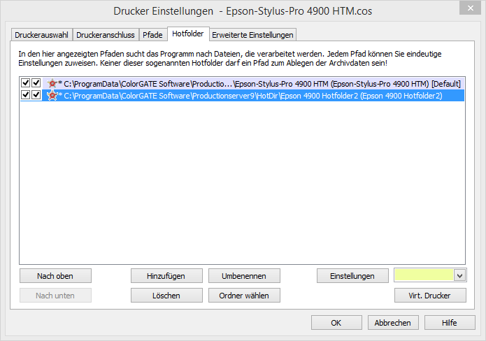 Erstellen Sie einen neuen Hotfolder, in diesem Beispiel Epson 4900 Hotfolder2, öffnen Sie die Job Einstellungen und wählen den Hotfolder deren Auftragseinstellungen sie verwenden möchten