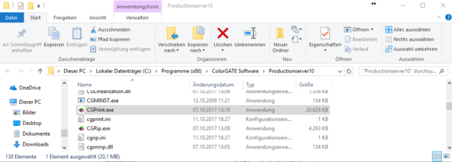 Der Ordner C:\Program Files (x86)\ColorGATE Software\Productionserver10 ist standardmäßig schreibgeschützt und man benötigt administrative Rechte, um dort zu schreiben.