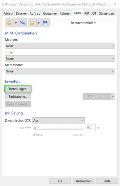 Die wichtigsten Einstellungen nimmt man aber im “Farbe”-Reiter über “Einstellungen…” vor.