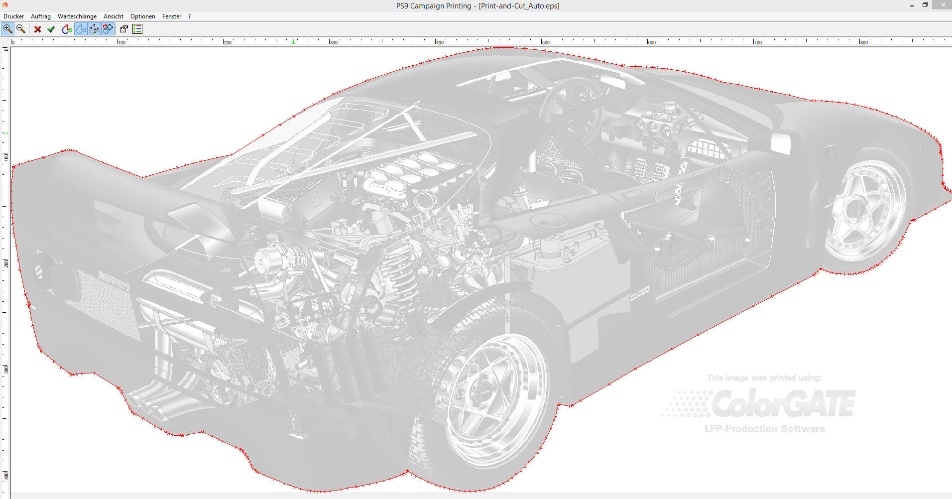 If you print the job , a cutting job is created (automatically when selected) and saved . Then open the ColorGATE CutServer . Please make sure that the CutServer is configured correctly .