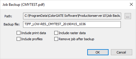 III. With the Job Backup module you can automatically move jobs to a folder after printing. All settings and even profiles are saved so that you can completely restore the job with all linked data. Of course, this process can also be initiated manually. Since every job or even whole containers are compressed into a single file, it is easy to store them separately on network folders.