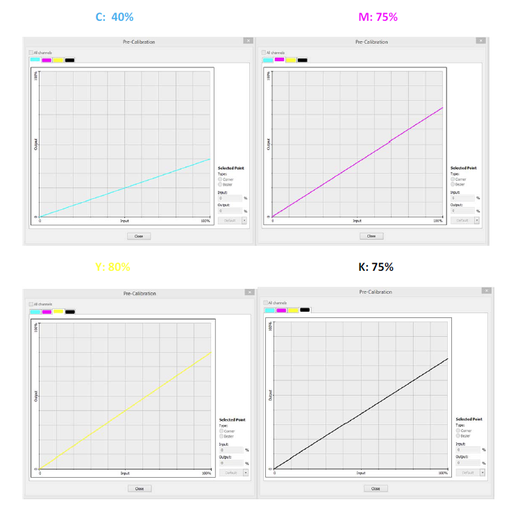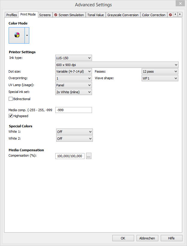 Below we are showing a profiling example for the print mode 600x900VD with MAPS2